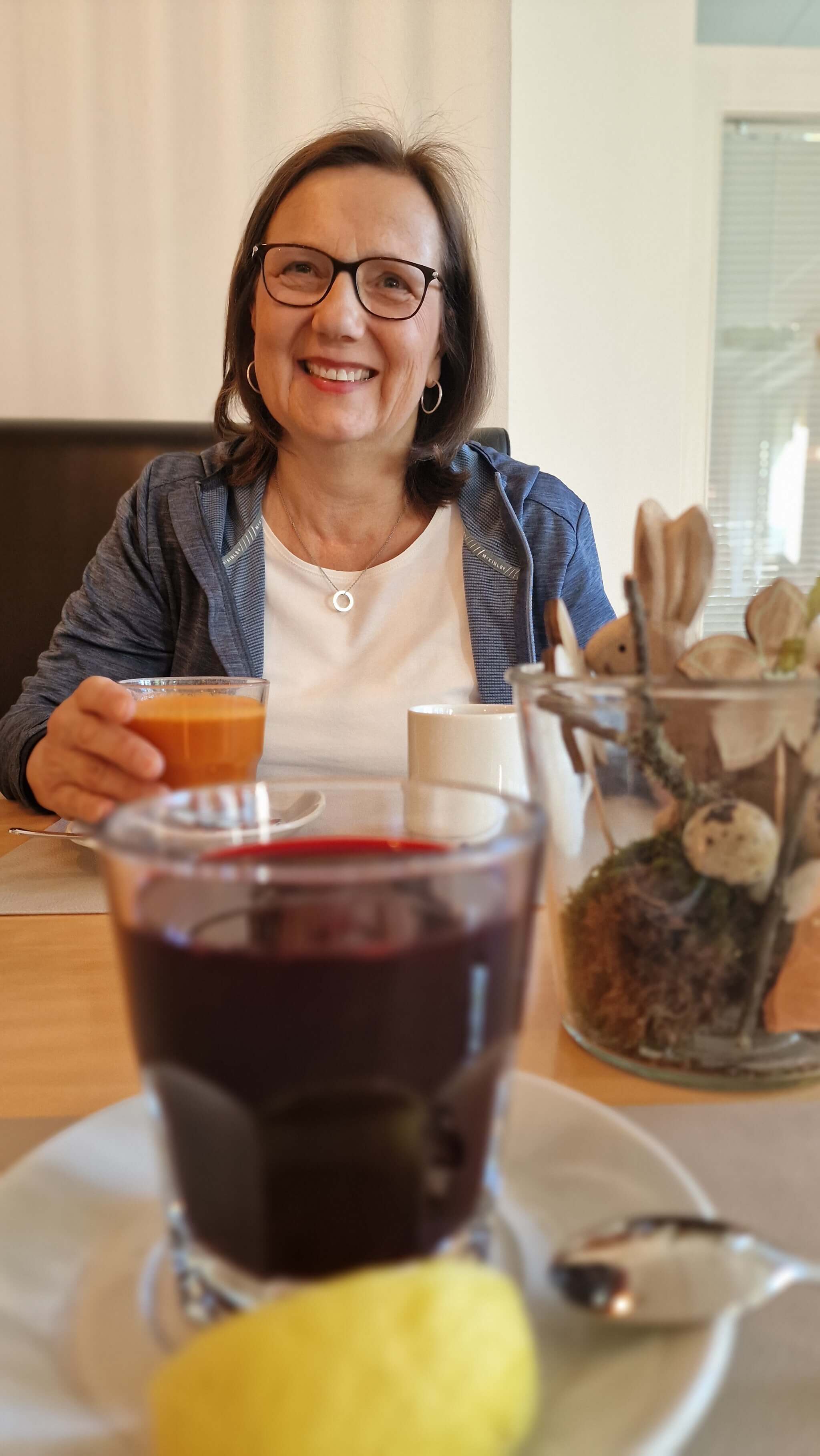 Und die ist großartig. So gut, dass es selbst Stephan überzeugt. Am letzten Tag, wenn er mich abholt, sitzen wir gemeinsam im Speisesaal und essen das Drei-Gänge-Menü – ich in der kleineren Variante, er ganz normal. Und wir genießen es beide. Was aus meiner Sicht ein echter Ritterschlag für das Küchenteam ist.